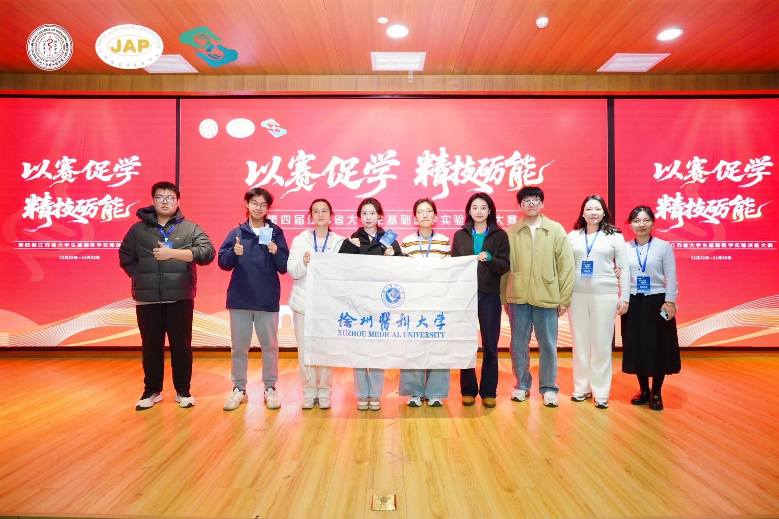 From November 22 to 23, the 4th Jiangsu University Students Basic Medical Experiment Skills Competition was held at Soochow University. Sponsored by the Jiangsu Society of Pathophysiology and organized by Soochow Medical College of Soochow University, the competition attracted 23 teams from 13 universities including Nanjing Medical University, Nanjing University, Soochow University and Xuzhou Medical University. Two representative teams from our university participated in the competition and won one group first prize and one group second prize respectively.