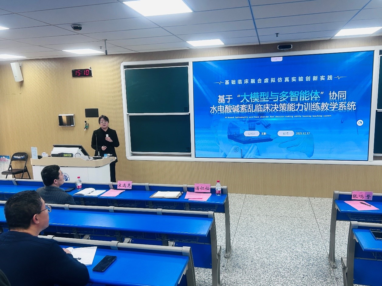 Associate Professor Wang Ying from the Department of Pathophysiology at the School of Basic Medical Sciences delivered a report titled "A Teaching System for Training Clinical Decision-Making Abilities in Water-Electrolyte and Acid-Base Balance Disorders Based on the Synergy of 'Large Models and Multi-Agent Systems.'" The report, guided by the core principle of "integrating virtual and physical elements, using the virtual to complement the physical," highlights the deep empowerment of AI. It constructs an inquiry-based teaching scenario featuring tripartite collaboration among "teachers, students, and machines," significantly enhancing student engagement in the classroom. The system forms a complete "learning-practice-feedback" closed-loop optimization framework, facilitating students' core transition from knowledge memorization to competency development, and offering a more practical and efficient solution for reforming basic medical practical teaching.
