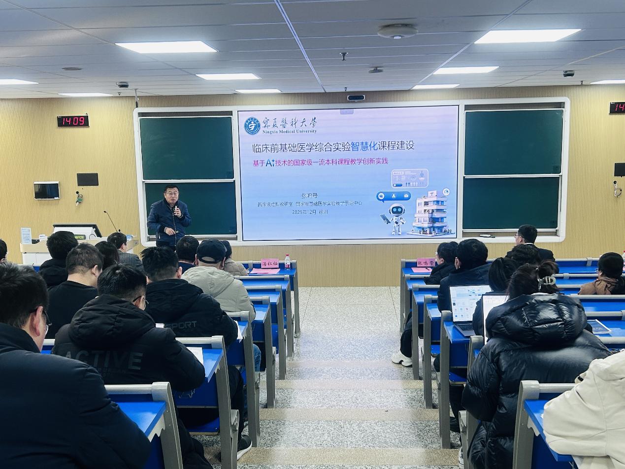 In response to the national strategy for educational digitalization and to promote the deep integration of AI technology with basic medical experimental teaching, while jointly exploring new pathways for medical curriculum development in the context of digitalization and intelligence, the School of Basic Medical Sciences successfully held the second session of its series training activities on digital-intelligent course development on December 17. The event took place in Classroom C202 of the Main Teaching Building on the main campus. School leaders, directors of various teaching and research departments, key faculty members, and relevant staff attended the activity, which was presided over by Song Yuanjian, Vice Dean of the School of Basic Medical Sciences.