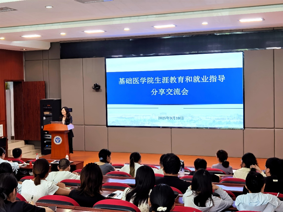 To further enhance students' awareness of career planning and professional development and to fully leverage the exemplary role of outstanding alumni, the School of Basic Medical Sciences recently organized a Career Education and Employment Guidance Sharing Session. The event invited Ma Xiangyu, a 2023 graduate, and Yuan Dongchen, a 2025 graduate from the School of Basic Medical Sciences, as keynote speakers. Attendees included Han Hongliu, Party Secretary of the School, Vice Dean Song Yuanjian, and over a hundred students from the School. The session was hosted by counselor Wang Na.