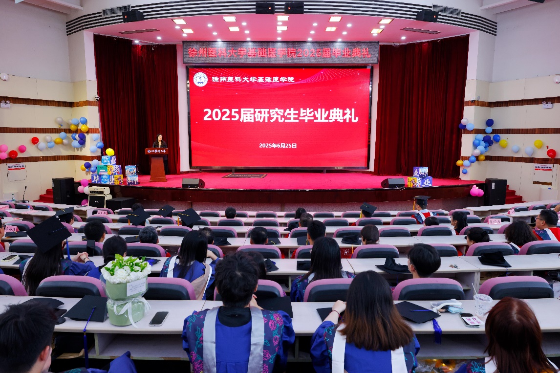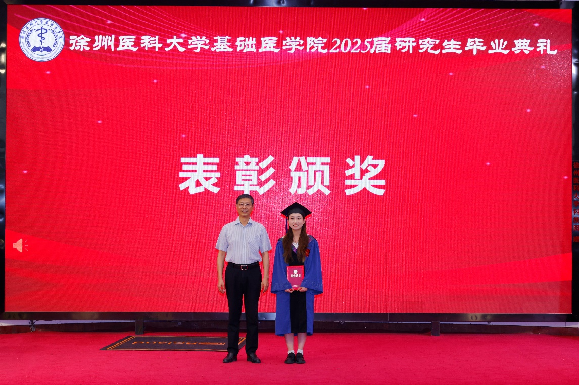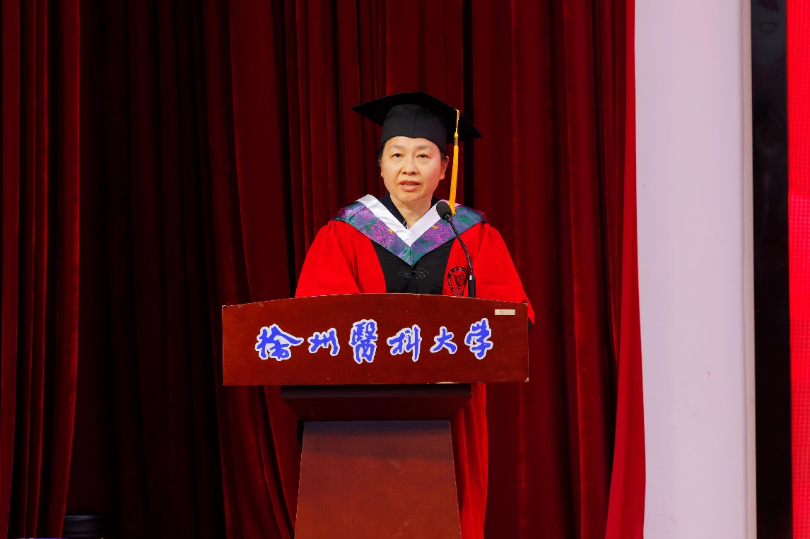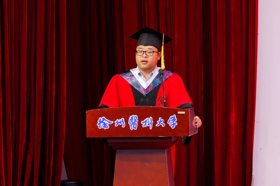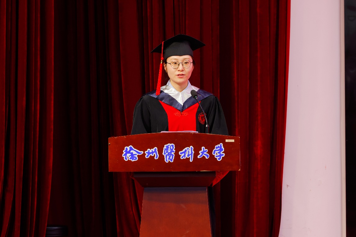 Professor Liu Wei, speaking on behalf of all supervisors, encouraged the graduates to maintain a commitment to lifelong learning, to stay aligned with the times with reverence, humility, and diligence, and to continue fostering the spirit of scientific exploration. Doctoral graduate Yuan Dongchen, representing all graduates, shared her research accomplishments over her seven years of master’s and doctoral studies, expressed gratitude to the university, the school, her teachers, and her peers, and pledged to uphold the university motto of "Cultivating Virtue in Medicine, Pursuing Knowledge with Innovation," striving to exemplify the spirit of "Xuzhou Medical University" in her future endeavors.